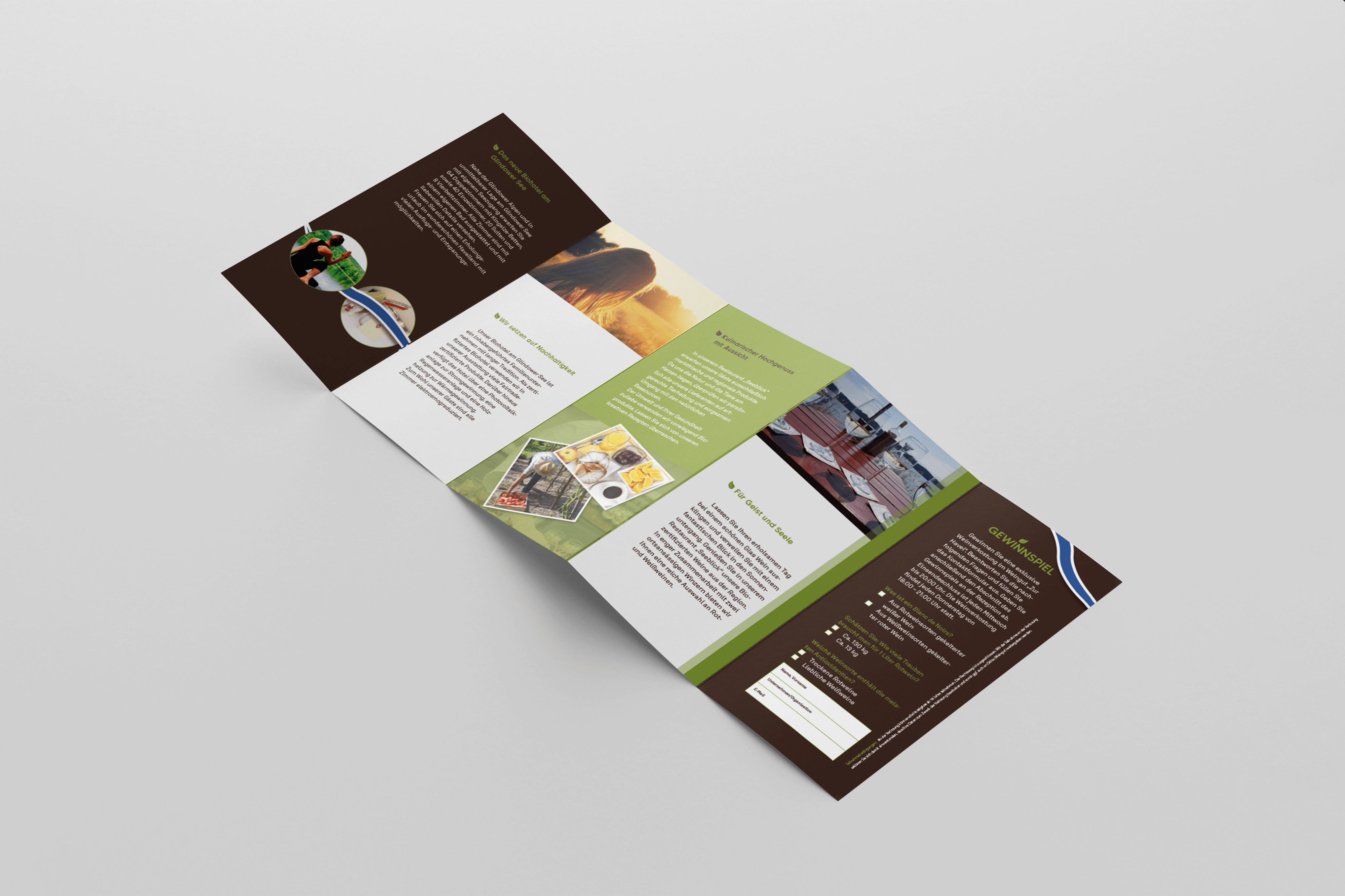 Der Flyer soll die Nachhaltigkeit und die umweltfreundlichen Aspekte des zertifizierten Biohotels widerspiegeln. Gleichzeitig soll er das erholsame Ambiente des Hotels und der Umgebung betonen. Ein Gwinnspiel soll außerdem in den Flyer integriert werden.