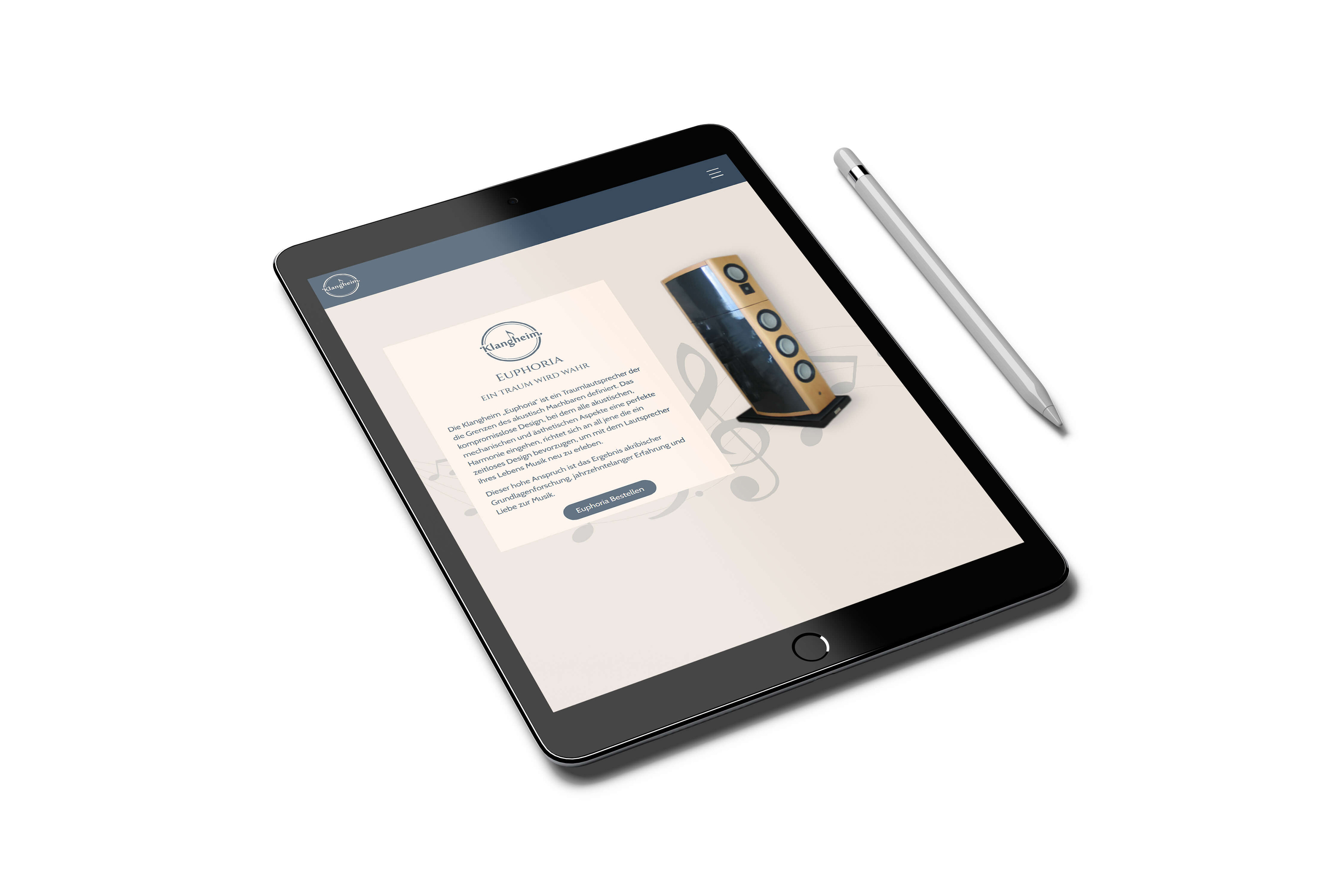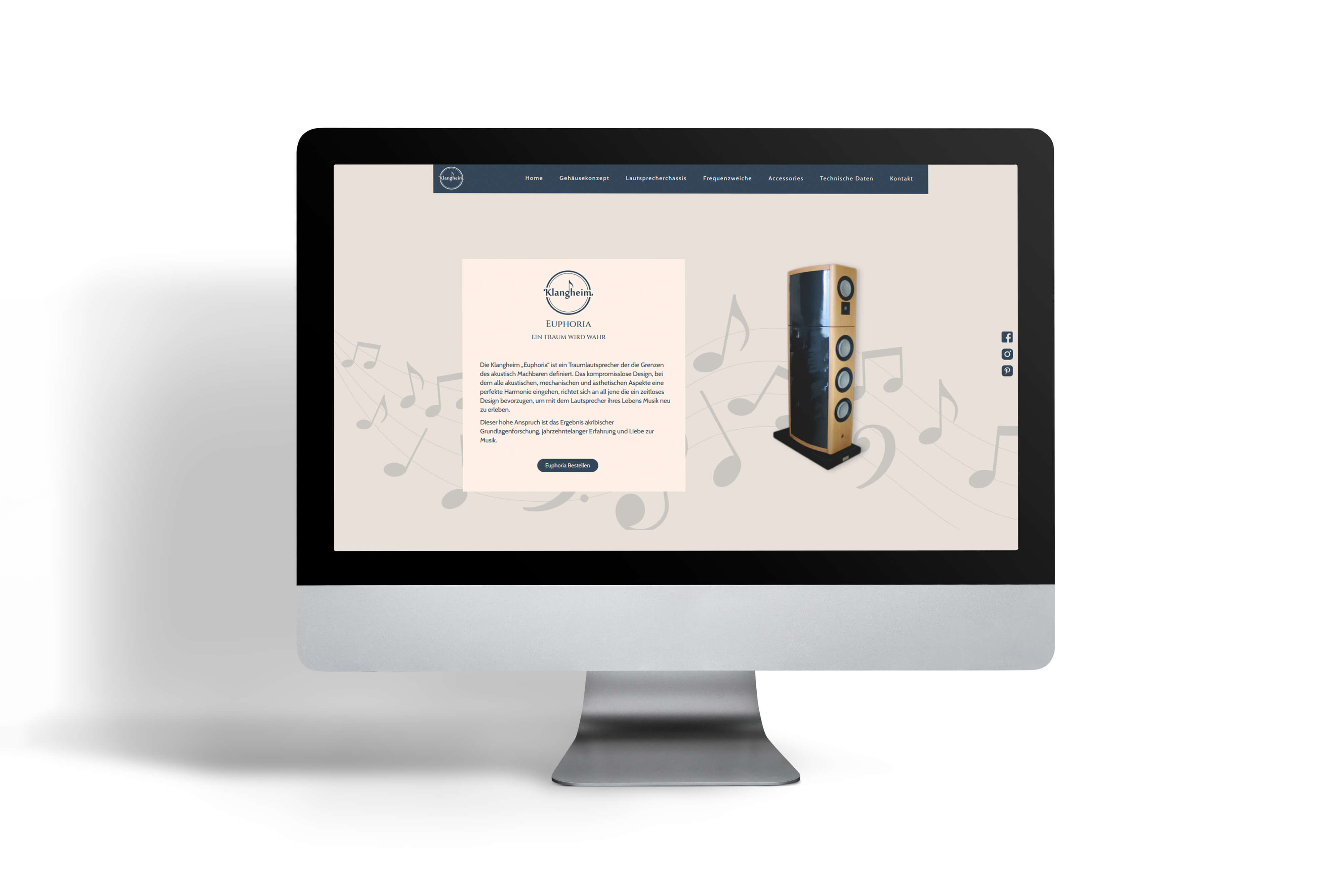 Die Firma Klangheim stellt hochwertige und ebenso hochpreisige Lautsprecher individuell her. Für das neue Flagschiff der Firma „Euphoria“ wurde die Erstellung einer Landing Page beauftragt.