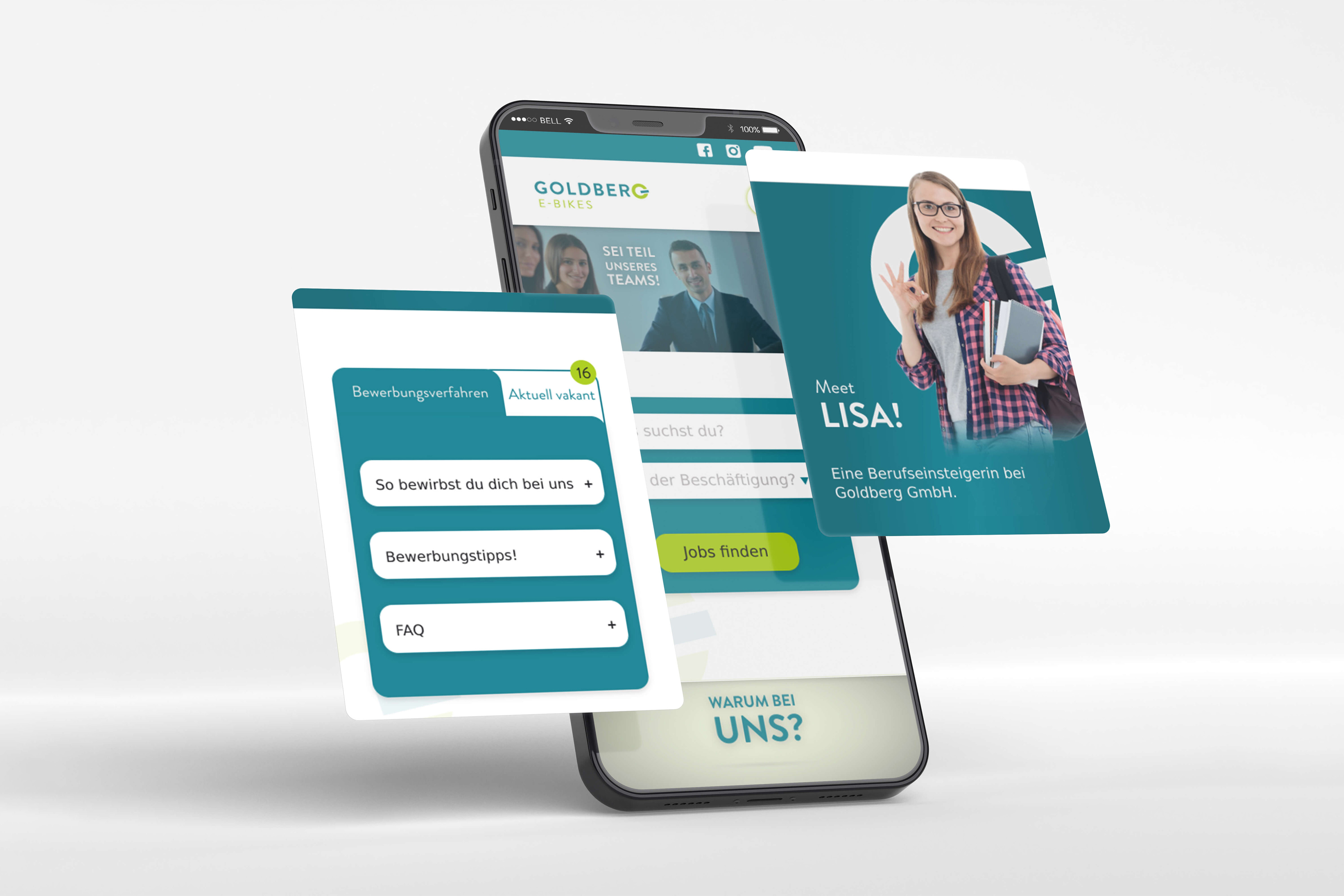 Website Relaunch für die Firma Goldberg E-Bikes mit einem modernen, auf Zielgruppe ausgerichteten Karriereportal sowie die Erstellung eines Messestands.
