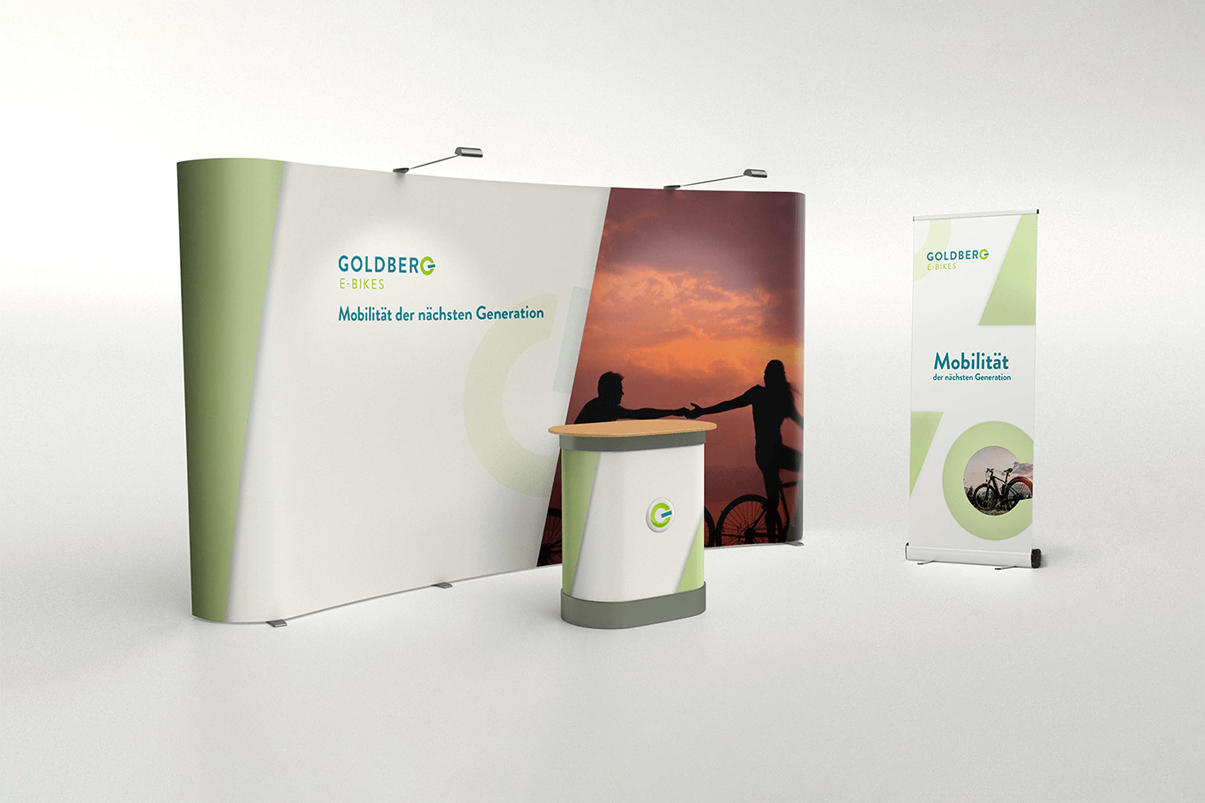 Zusätzlich fertigte ich ein Messestand-Design mit einem Roll-up für die Firma Goldberg E-Bikes an.