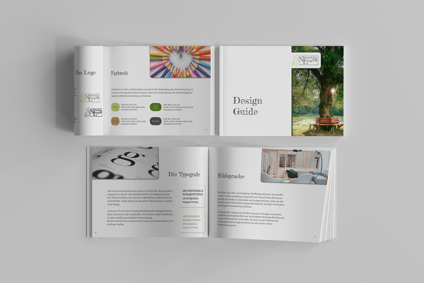 Neuerstellung des gesamten Corporate Design der Firma Natural Living 24 inklusive alle Geschäftsausstattungen und Medienprodukte (Teamarbeit).