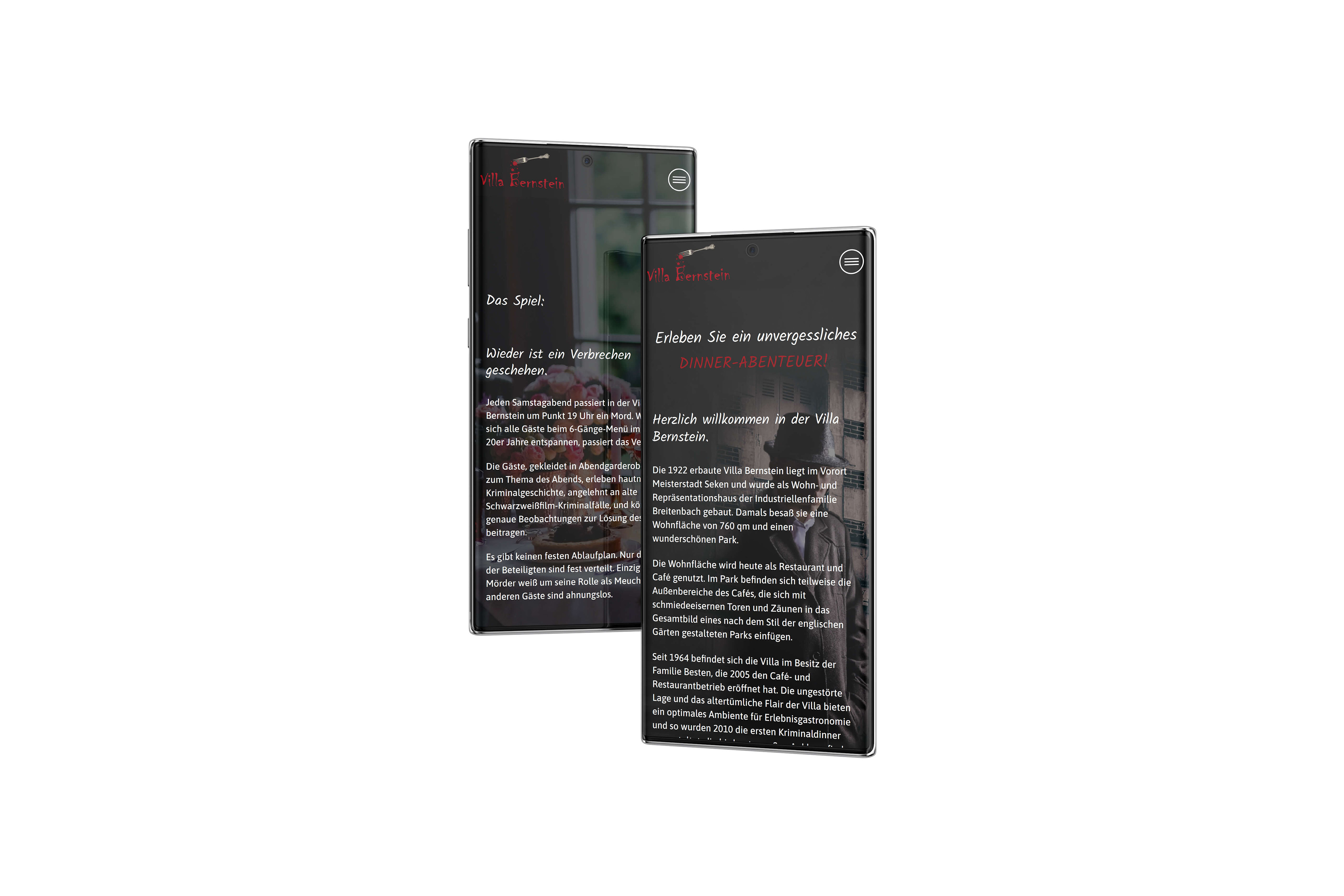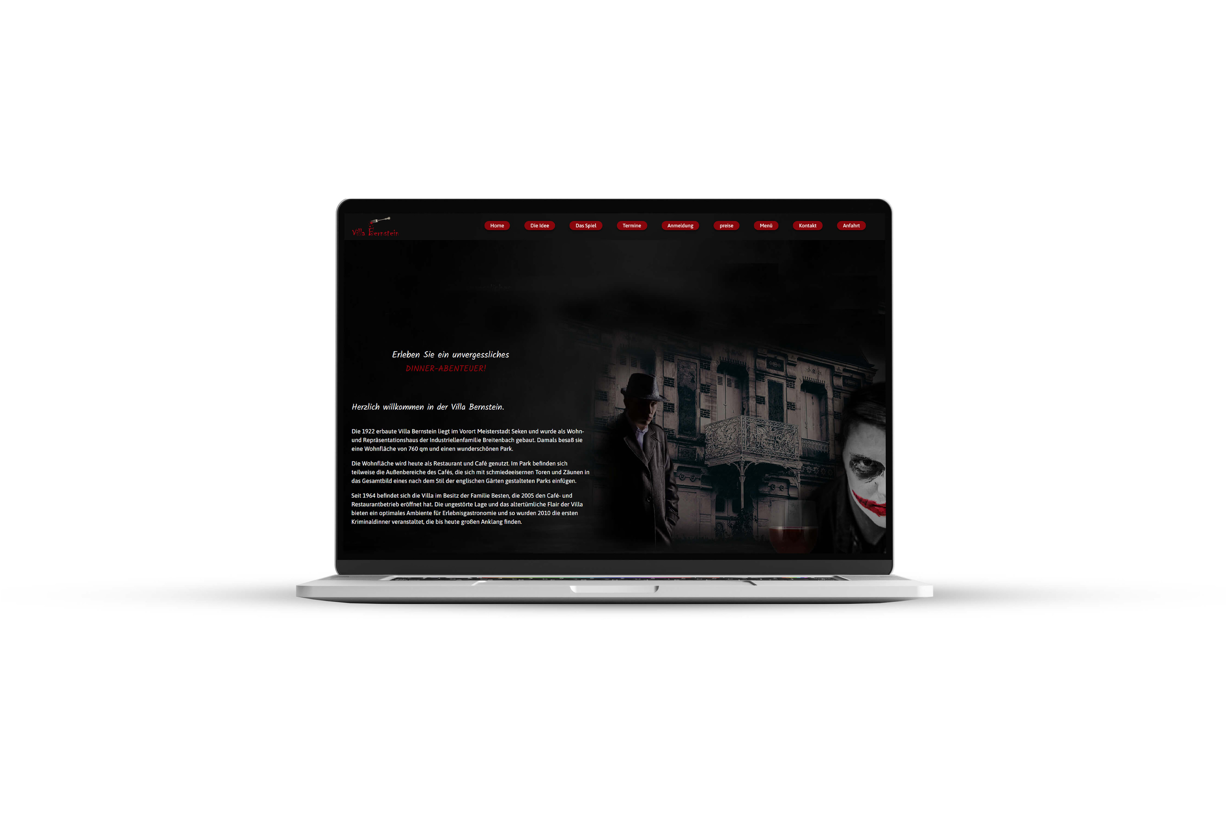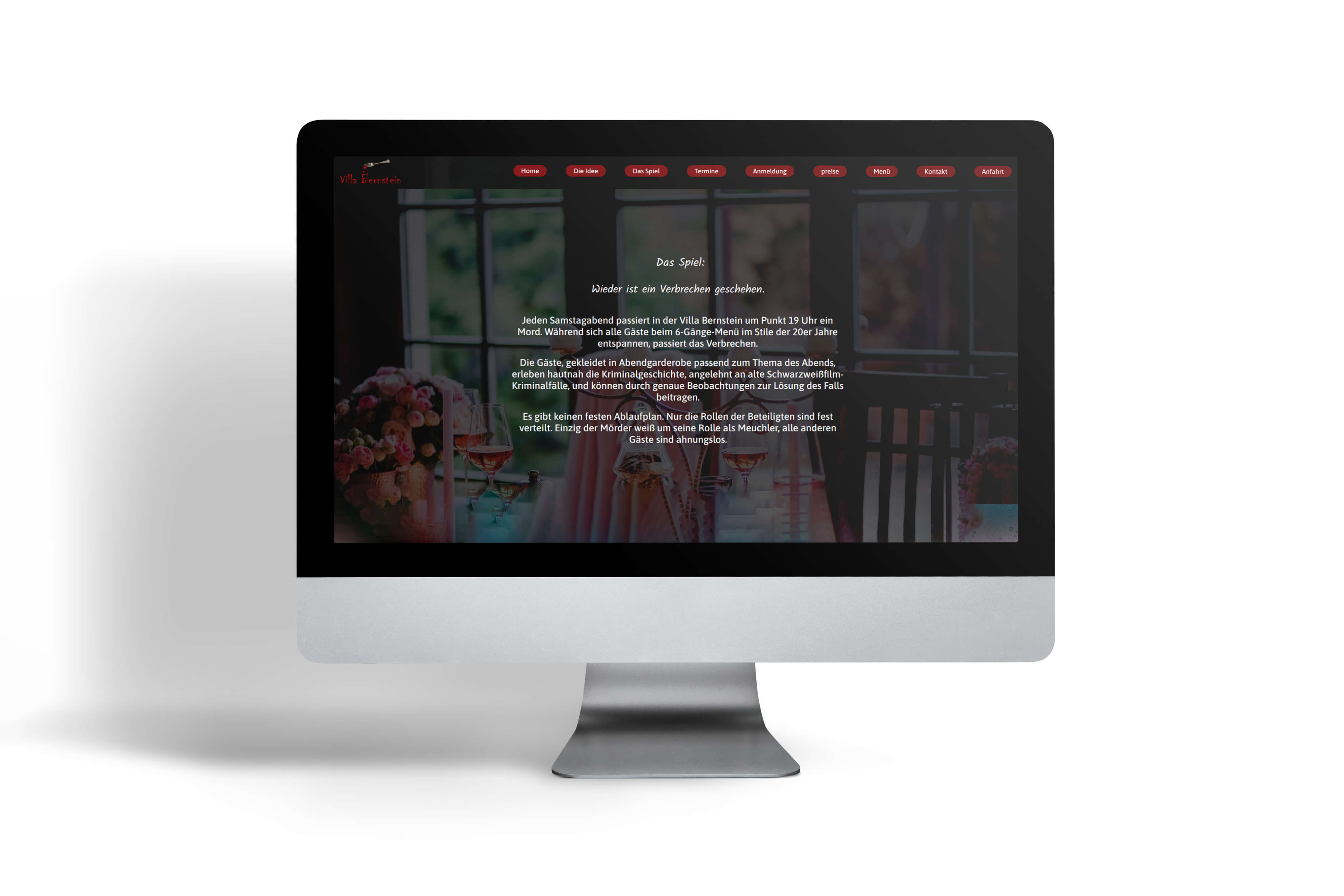 Das Café „Villa Bernstein“ bietet an ausgewählten Abenden Krimimaldinner an. Um dieses Abenderlebnis gebührend zu bewerben, soll eine Website gestaltet und umgesetzt werden.