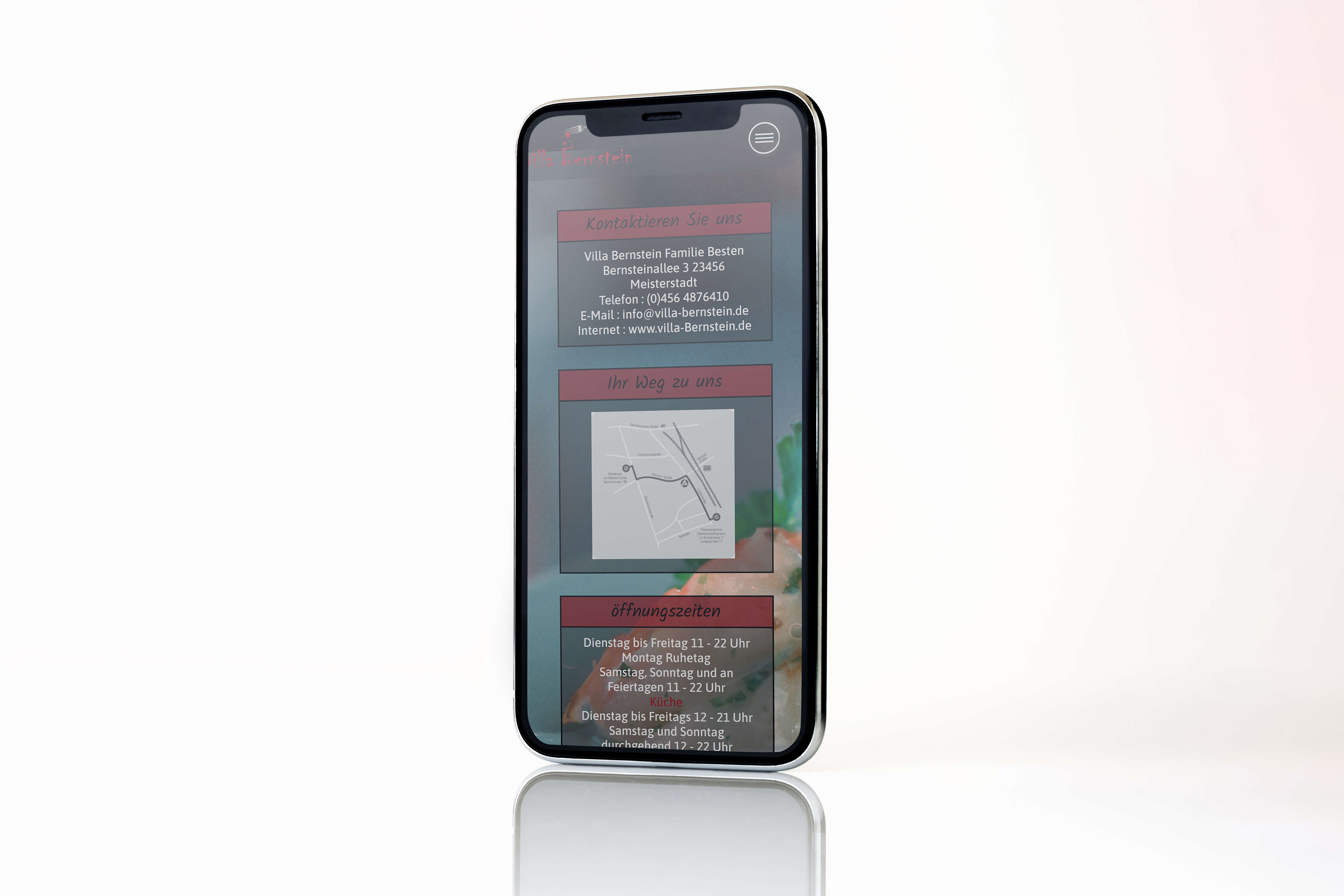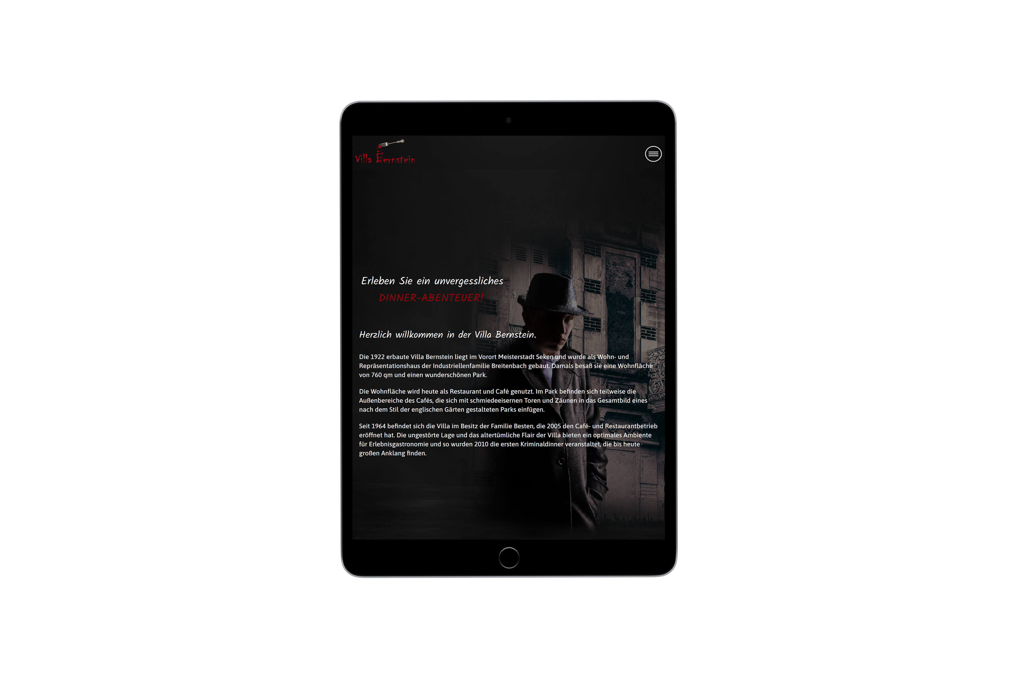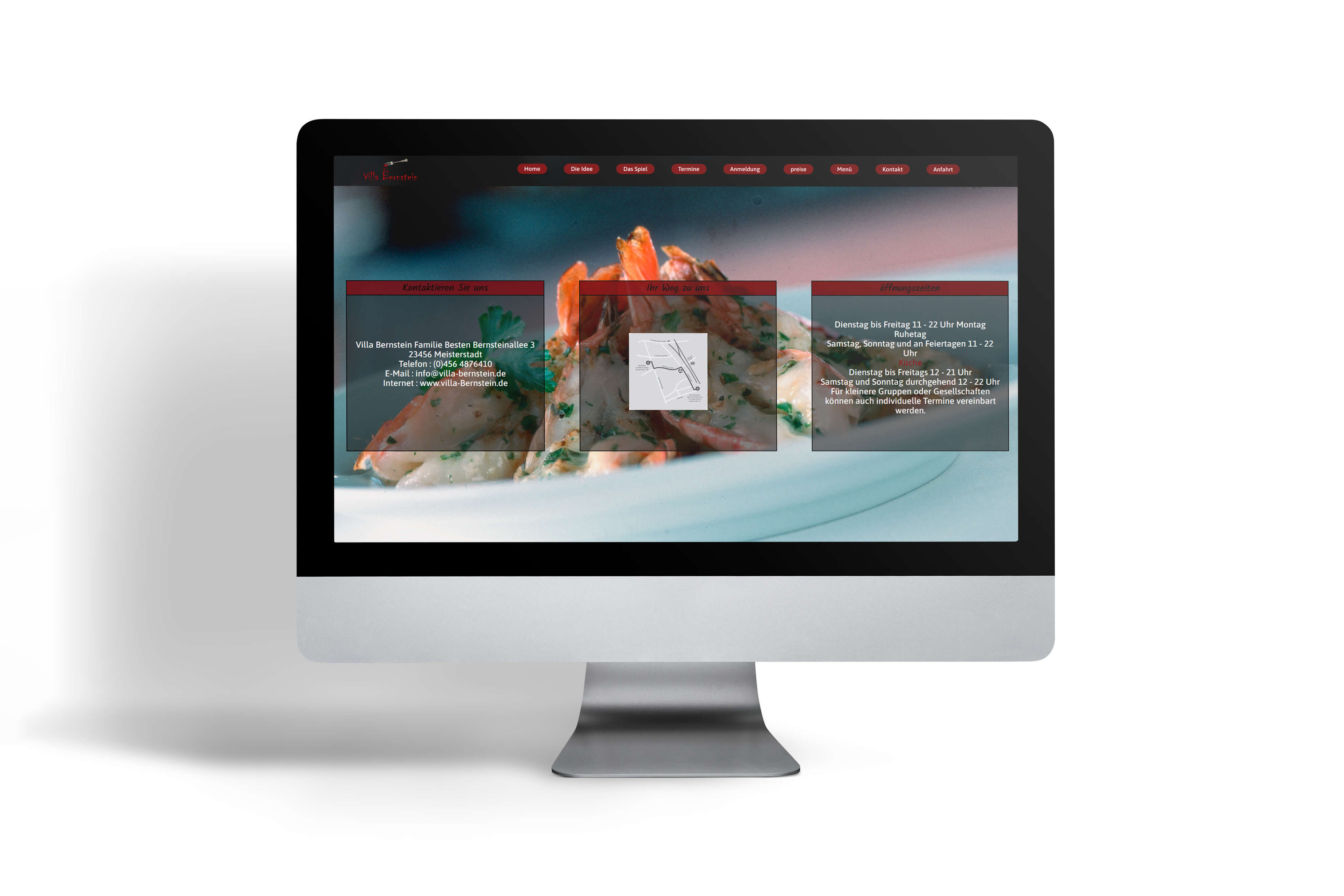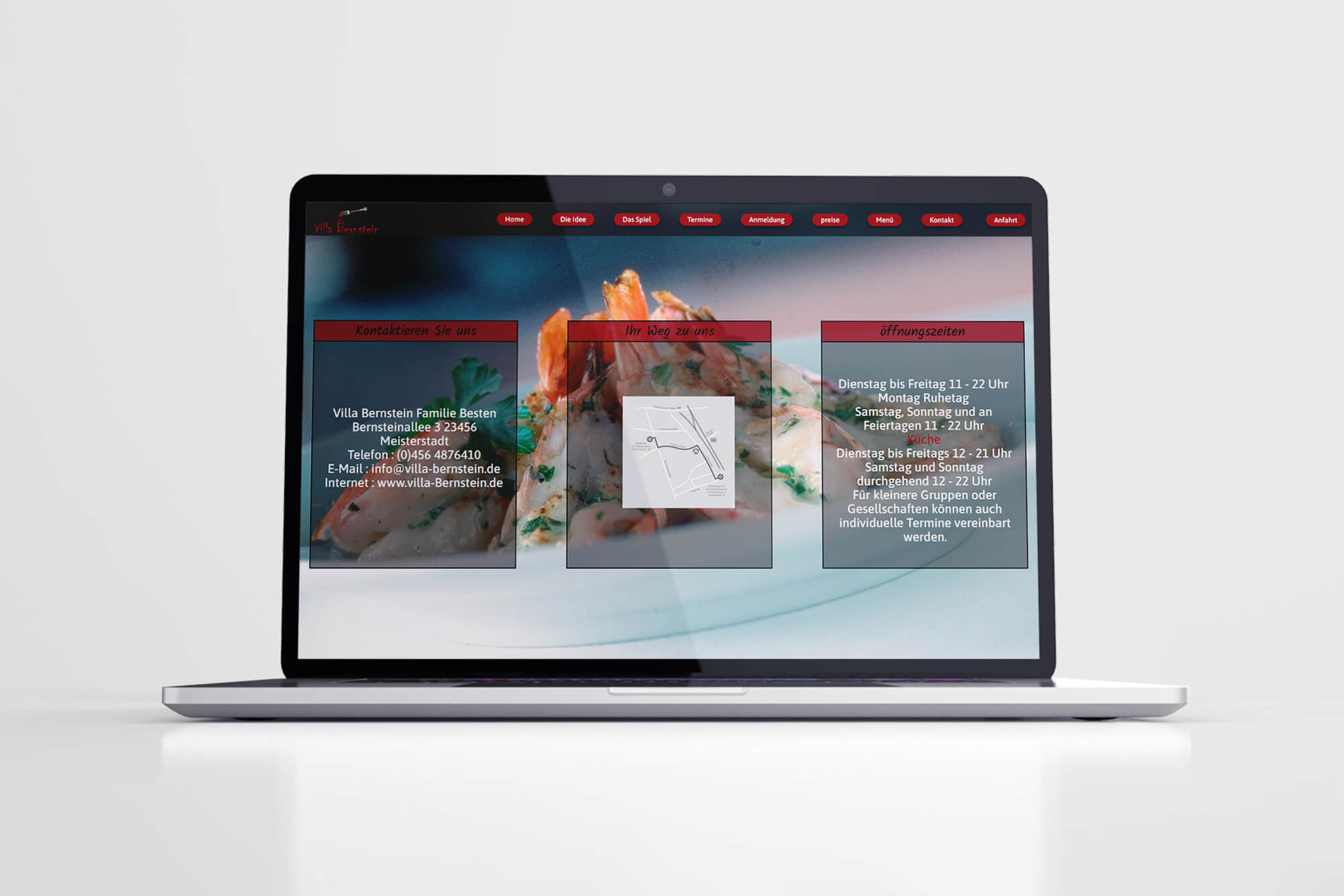 Das Café „Villa Bernstein“ bietet an ausgewählten Abenden Krimimaldinner an. Um dieses Abenderlebnis gebührend zu bewerben, soll eine Website gestaltet und umgesetzt werden.